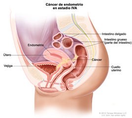 - Estadio IVA: el cáncer se ha extendido hacia la vejiga o al recto o está creciendo fuera de la pelvis.