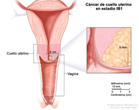 el cáncer se diseminó del cuello uterino a los dos tercios superiores de la vagina, pero no se diseminó al tejido que rodea el útero. El estadio IIA además se divide según el tamaño del tumor.