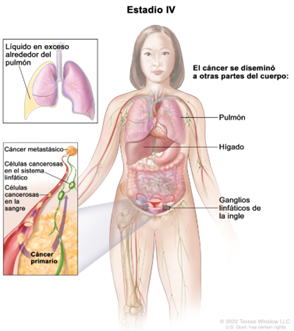 Se subdivide en los estadios IVA y IVB según a dónde se diseminó el cáncer.